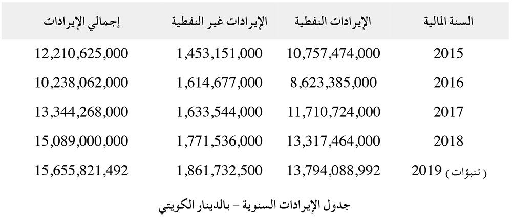 وبعد أخذ تلك الملاحظات الإحصائية بعين الاعتبار، يتبين لنا أن «الإيرادات النفطية» ترتفع بمعدل ٥,٢٪، أي بمعدل ٦٠٧ مليون د.ك. سنويا. ولكن، ثمة سقف يحد من هذا الارتفاع وهو ما يعرف بثبات حجم الإنتاج النفطي اليومي لدولة الكويت، والمقر من قبل أوبك. بذلك، يكون هذا السقف تحت وطأة تأثير سعر برميل النفط المرتبط بعامل الندرة سالف الذكر.